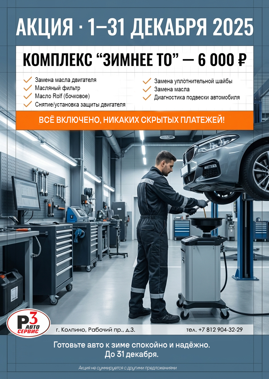 Подготовьте свой автомобиль к зиме быстро, качественно и по выгодной цене в Р3 АвтоСервис!